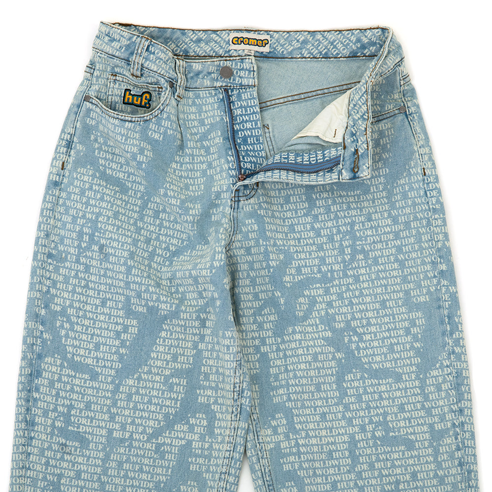 Built with a baggy fit and ample taper, the popular Cromer Pant designed by HUF team rider Brad Cromer returns with a new all-over print with a classic denim wash.